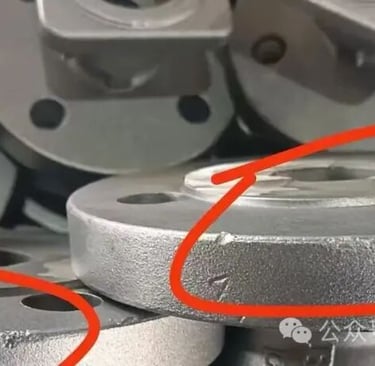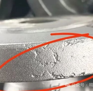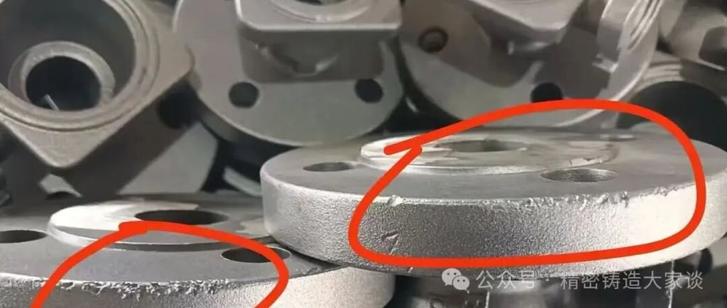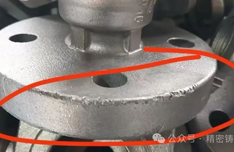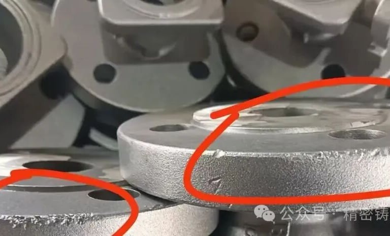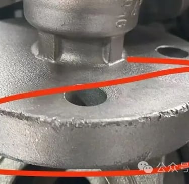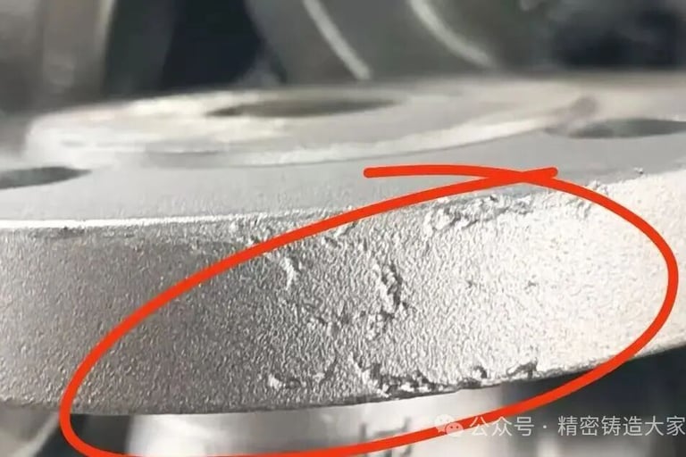 Normally, defects caused by wax ash tend to occur in fixed locations—specifically where dewaxing was incomplete. From Figure 2, it appears that residual wax remained across the entire flange surface, which satisfies the condition of incomplete dewaxing.