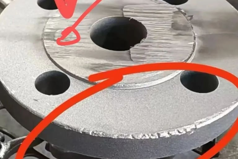 However, subsequent photos and the colleague’s description indicate that the defect did not occur in fixed positions—instead, it appeared along the edges of the flange, as shown in Figure 3, Figure 4, and Figure 5.
