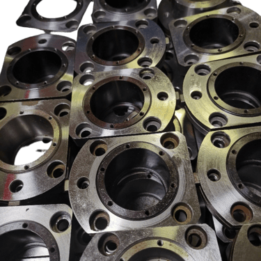The methods used for small parts and jewellery vary somewhat from those used for sculpture. A wax model is obtained either from injection into a rubber mould or by being custom-made by carving. The wax or waxes are sprued and fused onto a rubber base, called a "sprue base". Then a metal flask, which resembles a short length of steel pipe that ranges roughly from 3.5 to 15 centimeters tall and wide, is put over the sprue base and the waxes. Most sprue bases have a circular rim which grips the standard-sized flask, holding it in place. Investment (refractory plaster) is mixed and poured into the flask, filling it. It hardens, then is burned out as outlined above. Casting is usually done straight from the kiln either by centrifugal casting or vacuum casting.