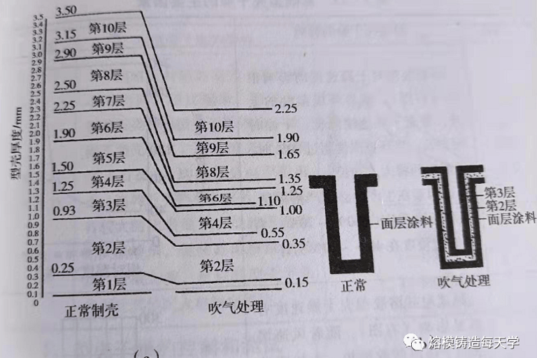 Figure 4: Shell thickness under normal coating vs. after air-blowing treatment, with detail of slot filling